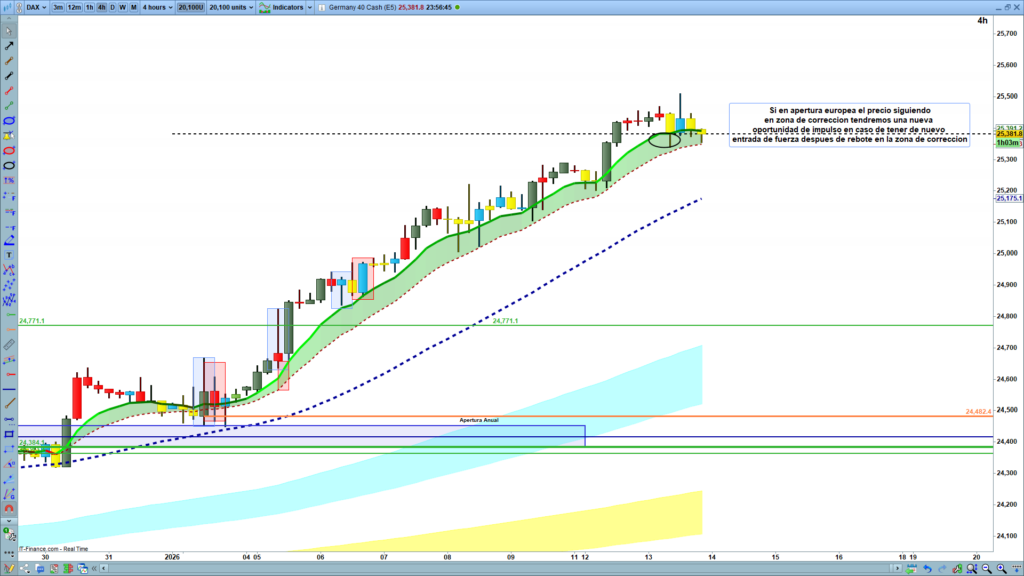 Condición: Es fundamental vigilar la apertura europea. Si el precio se mantiene «siguiendo en zona de corrección», se configura el escenario.