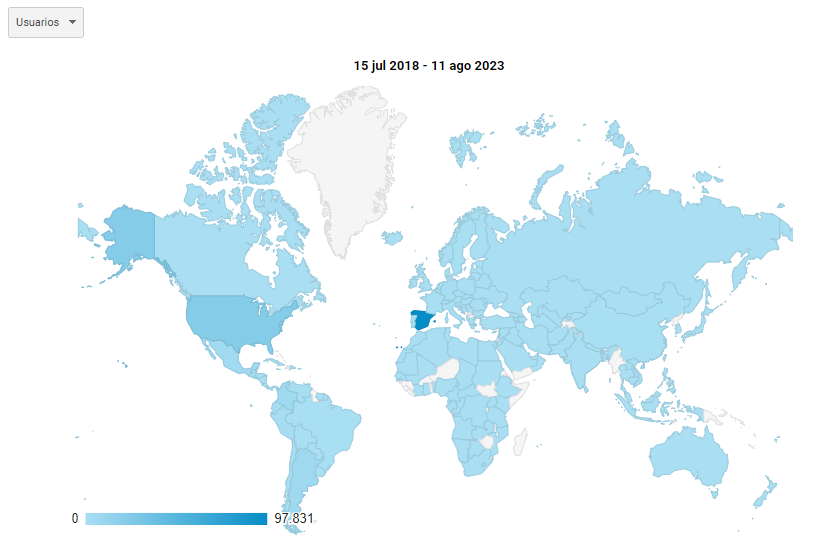 Como la localización de los usuarios está creciendo día a día, creo que es el momento, igual que ya hago con los directos del canal de YouTube, de abrir un poco más los análisis a nuevos activos. Este es el plano de distribución de usuarios.